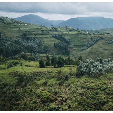 This anaerobic natural processed lot is from Gasharu washing station Wimana on the shores of Lake Kivu, Nyamasheke-Gatare district, Western Rwanda. Gasharu work with 1,075 smallholder farmers in the region, which is just a stone's throw from Nyangwe Forest National Park, one of the largest and best preserved mountain rainforests in central Africa, home to an esimated 25% of Africa's primates (excluding humans).